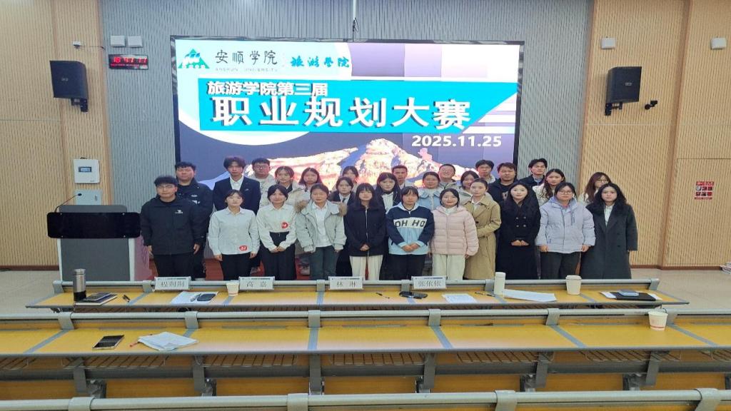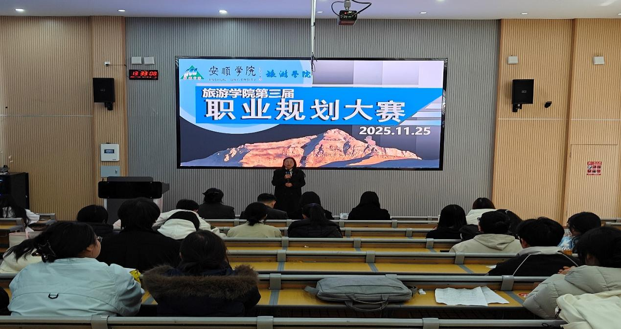 2025年11月25日下午1时30分,旅游学院第三次职业规划大赛于顺理楼128阶梯教室正式开赛。