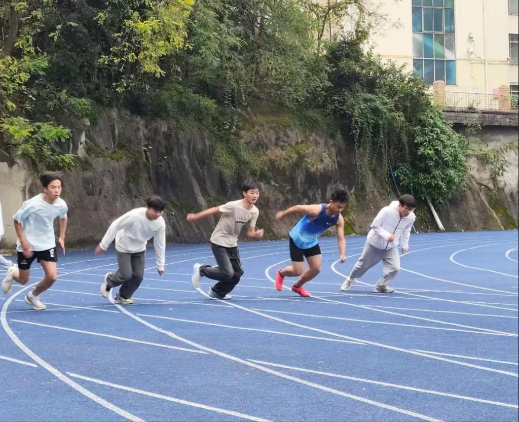 开幕式结束后,备受瞩目的田径赛事随即展开。在男女100米决赛中,运动员们如离弦之箭,在百米赛道上奋力冲刺,每一次加速都牵动着全场观众的心弦,现场呐喊助威声此起彼伏。最终,来自2025级旅游管理班的邰思宁同学以12秒55的优异成绩夺得男子组冠军,来自2025级酒店管理班的廖江雪同学以15秒93的成绩摘得女子组桂冠,充分展现了速度与激情的完美结合。