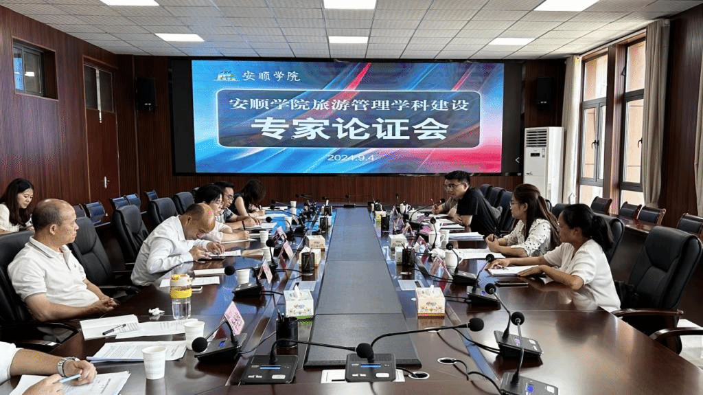 炎炎夏日,为了促进安顺学院旅游管理学科建设,2024年9月4日下午2时至下午6时,我院特别邀请了贵州省社会科学院黄旭东、蒋莉莉、王俊、曾亮、王付等5位知名专家对旅游管理学科建设进行论证。论证会在安道楼505会议室举行。我校科研处处长石恪,旅游学院副院长韦明顶,党委专职副书记杜成材,酒店管理与文化产业管理教研室主任朱敏、方莹及其他相关老师参会。