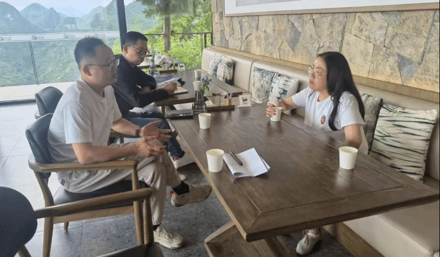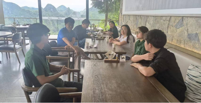 在尧珈·望瀑民宿,一行人深入了解了民宿管理和客户服务的实习情况。彭瑛与贵州望瀑酒店管理有限公司董事长王晋先生就如何培养具有创新思维和服务意识的旅游人才进行了深入交流,强调“体验经济”时代下,人文关怀与个性化服务的重要性。各位实习指导教师与在岗学生探讨了日常工作中遇到的问题及解决策略,强调持续学习与自我提升的价值。