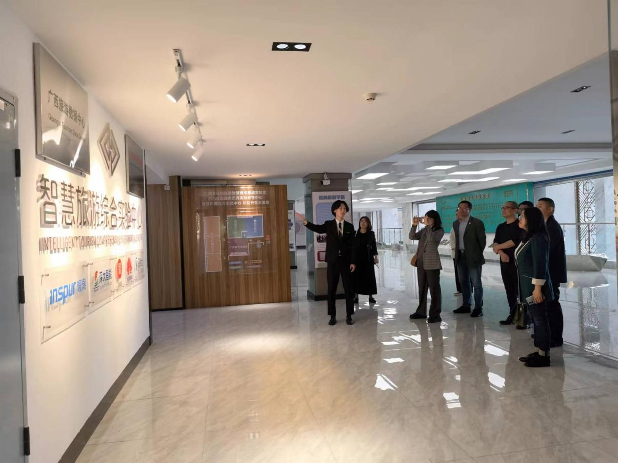 随后,与会人员共同参观了桂林旅游学院产教融合大楼,重点参观大住宿业教学实验中心、智慧旅游综合实验中心、旅游大数据实验室、旅游案例分析实验室。
