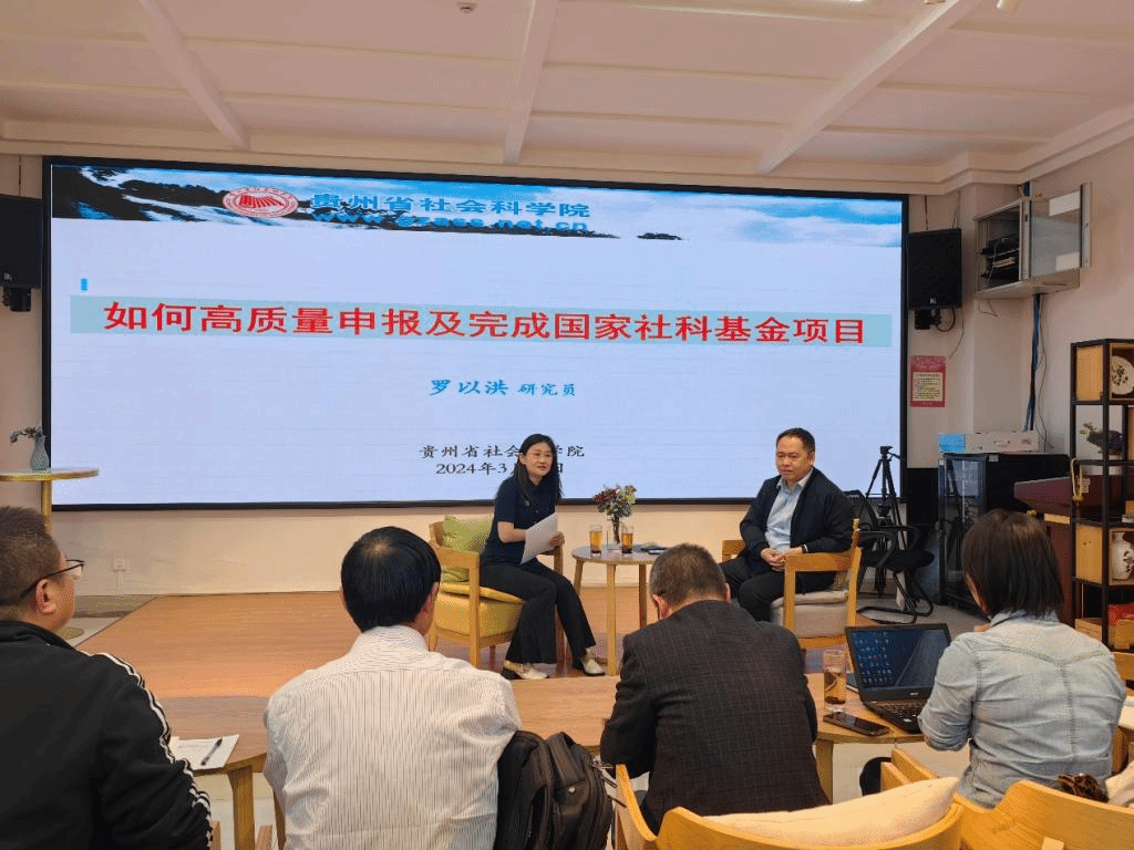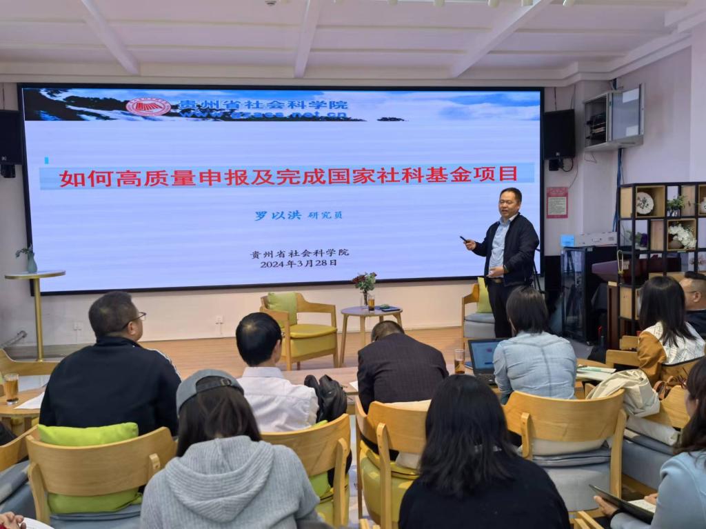 为切实提高国家社科基金项目申报质量和水平,扎实推进2024年度国家社科基金年度项目申报组织工作,3月29日下午,旅游学院邀请贵州省社会科学院区域经济研究所所长罗以洪研究员,在实验大楼旅游学院实训室召开2024年国家社科基金项目申报交流座谈会。会议共计30余位教师参会,由旅游学院副院长蒋莉莉主持。