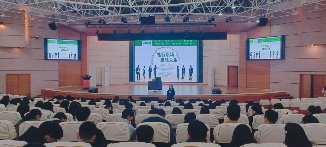 2024年3月6日上午,旅游学院教师林琳在安顺学院学术报告厅为2021级全体学生讲授“礼行职场,启航人生”主题讲座,旨在增强学生在专业实习过程中礼仪知识运用能力,提高学生礼仪素养,为即将到来的实习工作做准备。