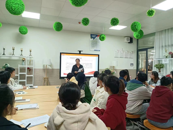 2022年11月15日晚,为加强第34期党校学员对党的二十大精神的学习,深刻领悟党的二十大报告的重要意义,我院党委书记龚文静在综合实验楼四楼旅游学院花艺实训室,以《深刻领会党的二十大报告的核心要义》为题给我院23名入党积极分子和发展对象进行了授课。