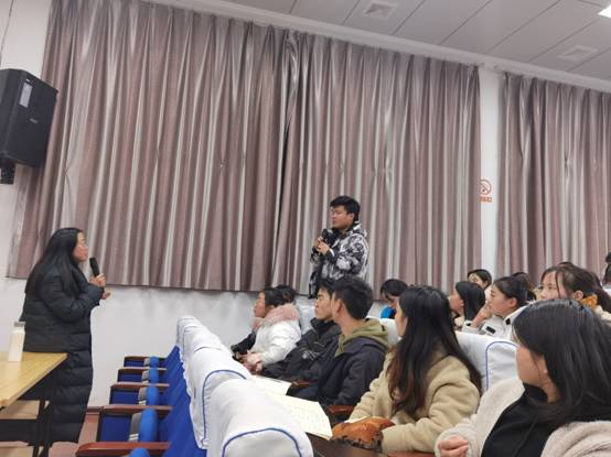 彭瑛以4篇往届的优秀毕业论文为实例,通过对4篇论文的全面讲解及分析,为同学们详细讲述毕业论文写作要求以及相关要点;韦明顶为同学们讲述田野调研的方法以及毕业论文写作时应注意的细节问题。讲座最后,两位老师与学生就毕业论文写作中存在的问题和困惑进行交流。