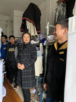 龚文静关切地询问了同学们学习、生活状况,认真查看学生寝室的住宿环境和用水、用电等情况,并和学生们进行了亲切交谈,鼓励学生们进一步加强专业知识的学习和实践,为今后的发展做好规划和准备,要敢于为梦想而奋斗。冬季尤其要注意用电安全,寝室一定不能使用大功率电器,平时要多开门开窗,确保空气清新,预防冬季流感。同时要有很好的卫生习惯,不要留垃圾在寝室内,内务整理要及时,养成良好的卫生习惯。尤其对2018级旅游管理专科班的全体同学提出要求,在保证寝室卫生、安全的前提下,一定要好好备战专升本考试,争取全班同学升本成功。