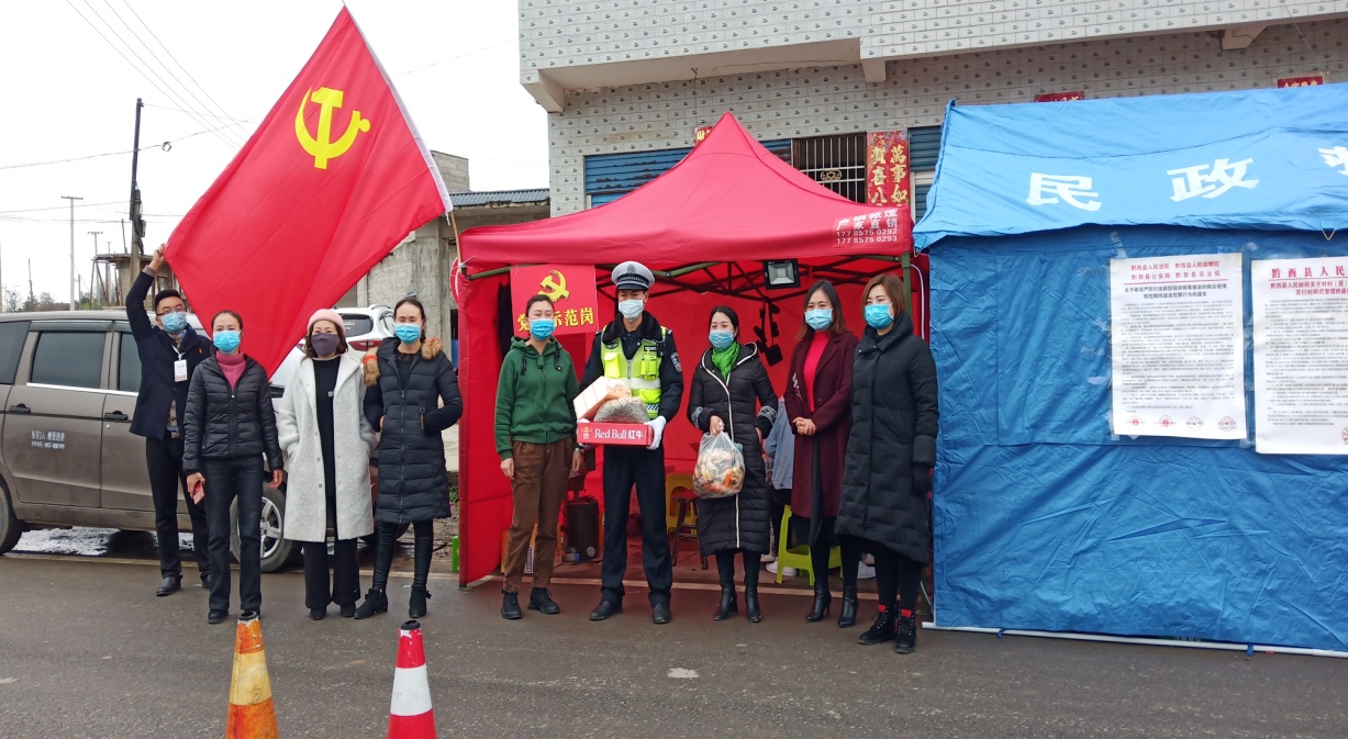 高银花同学(中)社区抗疫志愿者团队合影