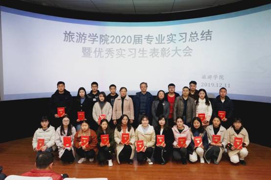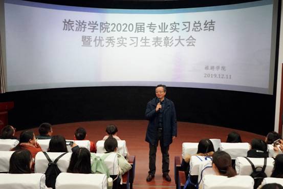 2019年12月11日上午,我院在A02(模拟导游实训室)教室召开2020届专业实习总结暨优秀实习生表彰大会。我院院长吴羽、党委书记龚文静、党委副书记赵世钊、副院长彭瑛,以及我院相关教师,2016级旅游管理班113名学生参加会议。