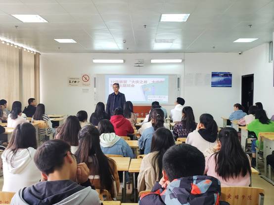 吴羽院长从我国的民族自信心和民族凝聚力开始讲解,引发了同学们对国家大事的思考。接着吴羽院长从中美贸易战中的案例分析了七十大庆后国家的现状,鼓励同学们关心国家大事,积极推动国家向前发展。随后,建议同学们从个人实际出发,制定科学合理的学业规划,并不断思考和探索,形成个人职业规划和人生规划。最后,吴羽院长鼓励同学们要养成读书、思考的习惯,多实践,努力表达自己、完善自己,增强毕业后入职的社会竞争力和综合素养。