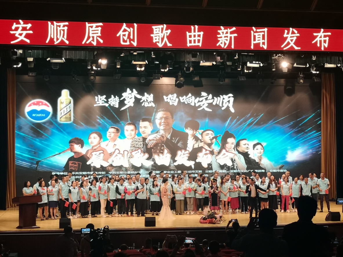 发布会于下午3:00正式开始,以谷友发、陆东东、屯堡兄弟、春燕子为代表的安顺原创音乐人一一登台献唱新歌。歌曲主题丰富多彩,有宣传布依族特色的《布依山水惹人醉》、有现代中国风的《水墨贵州》、还有独具特色《家在贵州》以及献礼祖国建国70周年的《中华有为》。