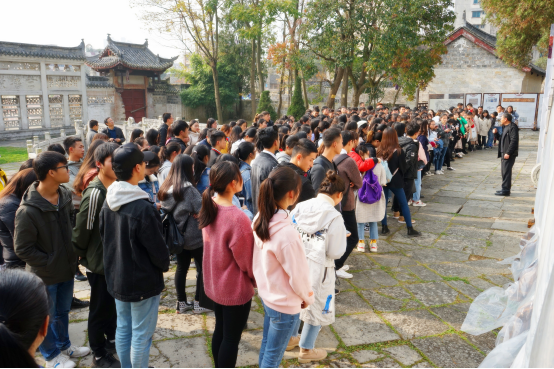 2018年11月30日下午,我院2016级、2017级旅游管理班共271名同学前往安顺文庙参加由市文物局主办的“战时故宫:华严洞——国宝南迁与安顺”图片书画主题展。本次见习活动由吴羽院长带队,并请到安顺文化名人杜应国先生为同学们做现场讲解。