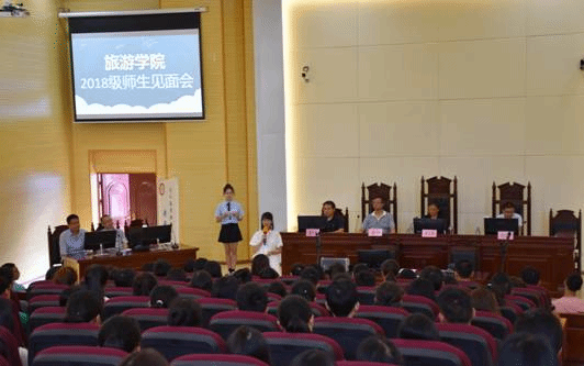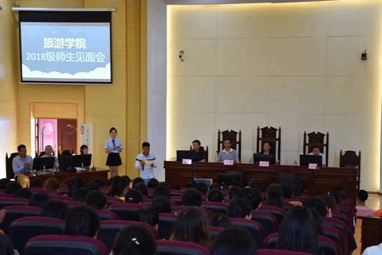 2018年9月5日上午9:30,我院2018级师生见面会在新教A11召开。党总支书记龚文静、院长吴羽、副院长赵世钊、副院长潘昌盛、旅游学院2018级各班班主任、我院全体教师、辅导员以及2018级全体新生参与此次会议。新生见面会由何媛同学担任主持。