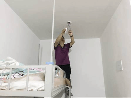 在走访到一间女生寝室时,一名新同学说到她铺床时不小心将顶灯座碰坏导致电线脱出,赵世钊副院长在了解到这一情况后,立即动手修理,解除安全隐患后又即刻联系后勤部门前来维修。新生们在看到这一情景时大为触动,纷纷赞到“有这样的老师真是超级暖心的!”