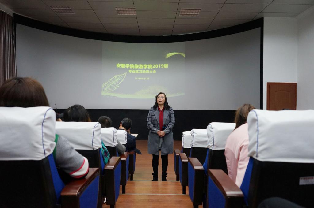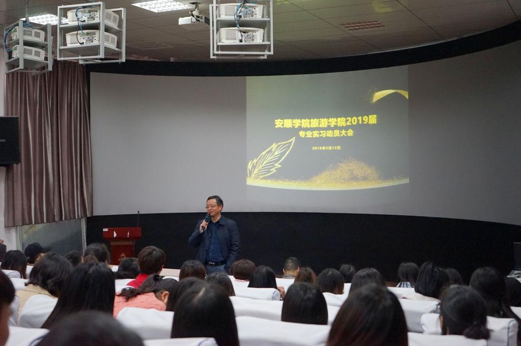 按照培养方案和教学计划的安排,2018年3月12日上午,我院2019届旅游管理、文化产业管理专业实习在A02(模拟导游实训室)正式启动。启动仪式采取动员大会加实习培训的方式进行。旅游学院院长吴羽、党总支书记蒋晓兰、副院长赵世钊、潘昌盛,以及实习实训管理、实习班班主任、教研室等相关教师,2019届旅游管理、文化产业管理班共计一百人参加会议。动员会上,吴羽院长从“实习是什么”、“实习的方法”、“实习的道路”三个方面,通过案例分析、名人语录等方面深入浅出,向同学们指出:专业实习是教学的一个重要环节,是理论联系实际的良好机会,希望通过专业实习,对实习生的个人综合能力、职业规划、人际交往能力都有所助益;他要求实习生在专业实习的过程中勤于思考、虚心学习,注意安全,顺利完成实习任务。
