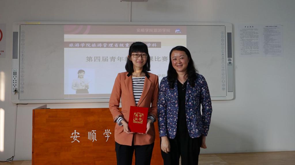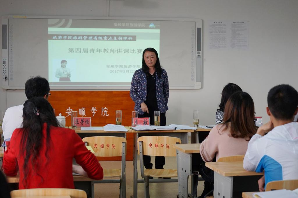 为推进旅游管理省级重点支持学科建设,促进教师间的教学交流,提升青年教师教学能力和业务水平,2017年5月22日,我院在特1107教室举办旅游管理省级重点支持学科教学观摩暨第四届青年教师讲课比赛。安顺学院副院长王芳恒教授、教务处处长支敏教授,我院院长吴羽教授、党总支书记蒋晓兰教授、副院长赵世钊副教授和潘昌盛副教授出席并担任评委。