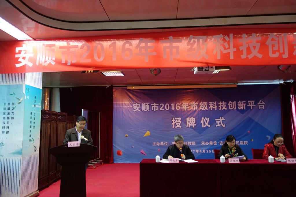 2017年4月25日,由安顺市科技局主办、安顺市人民医院承办的“安顺市2016年市级科技创新平台授牌仪式”在安顺市人民医院八楼会议室举行,包括我院组织申报的“智慧旅游工程技术研究中心”在内的七个平台接受授牌。