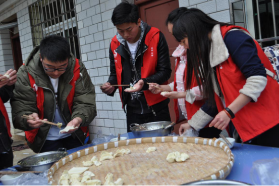首先,院方负责人对志愿者们的到来表示热情欢迎并详细介绍了福利院情况;随后志愿者走进生活园区同孩子们亲切交流、热情互动。虽然这些孩子存在这样或那样的障碍,交流不是那么的顺畅,但从他们的可爱的笑脸上、满意的眼神中感受到了志愿者们的温暖和爱心。临近中午,志愿者们将带来的材料做成“爱心饺子”,与孩子们一起共进午餐,分享劳动的快乐。志愿者们的热情使孩子们暂时忘记了孤独与自卑,绽放出一张张可爱的笑脸,这种场景深深的触动了每个志愿者的心。