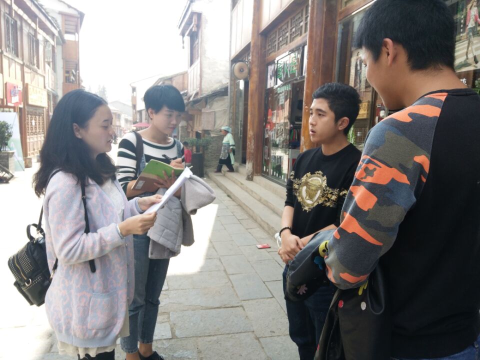 2016年11月19、20日,在任课教师赵世钊的带领下,我院2013级旅游管理班85名同学分为8个小组到旧州古镇进行《旅游规划与开发》课程实践教学活动。课程将旧州古镇作为实践教学案例,在校内设计调查问卷、访谈提纲、文本撰写提纲,明确调查任务及对象。到达旧州古镇后各小组根据任务开展走访、调查、访谈、收集相关资料。此次活动将实践教学有机镶嵌到课程教学之中,结合“旅游资源调查分析评价、旅游市场现状与开发、旅游空间布局与战略、旅游产业结构、旅游产业要素规划”等课程教学内容的需要,实地了解旧州古镇旅游资源、旅游市场、旅游空间布局、旅游产业等情况。为进行旧州古镇旅游发展规划奠定基础。