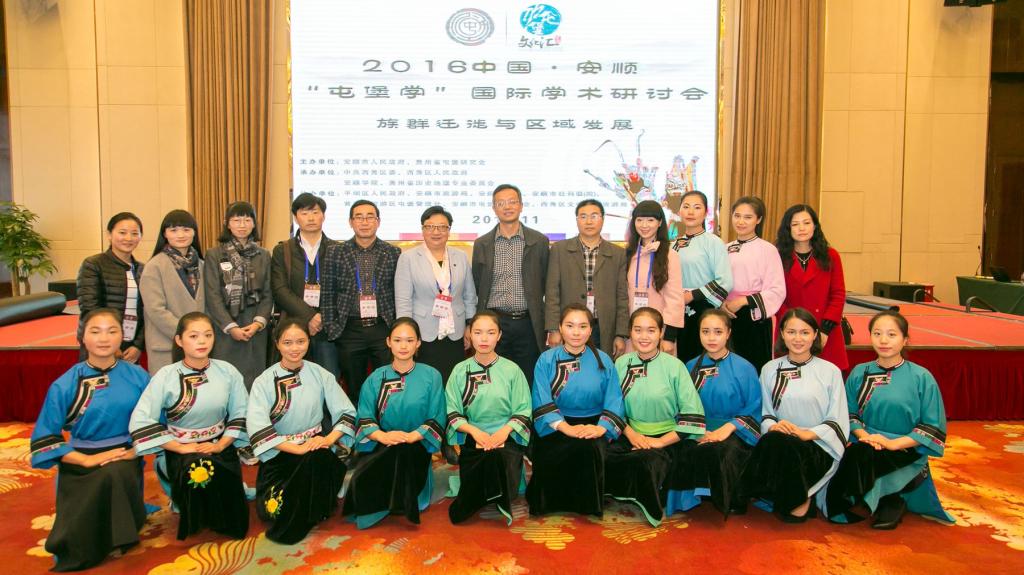 11月12至13日,2016中国•安顺“屯堡学”国际学术研讨会在安顺万绿城铂瑞兹酒店召开。本次活动由安顺市政府、贵州省屯堡研究会主办,中共西秀区委、西秀区人民政府、安顺学院、贵州省历史地理专业委员会承办,安顺市社科联、安顺市妇联、黄果树旅游区屯堡管理处、安顺市屯堡文化学会等多家单位协办,国内外多所高校、研究机构150余名专家学者及媒体参加会议,共同探讨“屯堡学”建构问题。本次研讨会包括“族群迁徙与区域发展”主题报告会,以及“屯田、卫所屯堡与屯堡学的建构”、“屯堡景观与屯堡服饰文化”、“屯堡文化旅游融合发展与遗产保护”三个分论坛。我院院长吴羽、副院长赵世钊、以及相关教师共9人参加会议。
