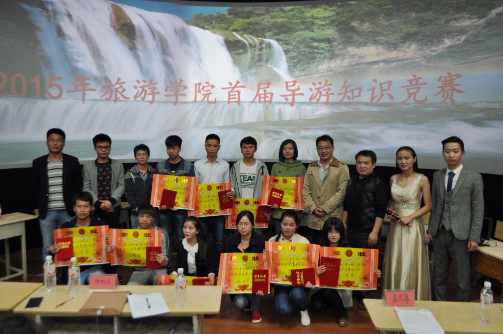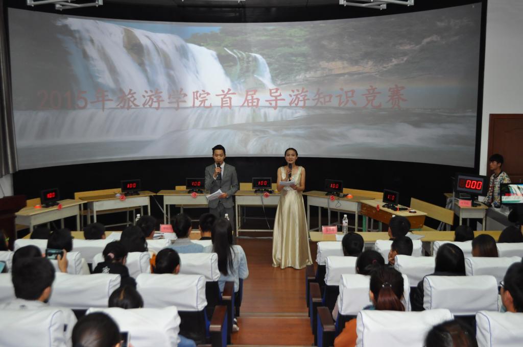 2015年11月16日晚7点,我院在A02教室举办“2015年首届导游知识竞赛”。我院副院长潘昌盛副教授,辅导员王振伟老师、王兴社老师出席并担任仲裁委员。我院各班学生代表及特邀嘉宾孙波、罗璇等观看了竞赛。竞赛由李鸿誉、江倩倩同学主持。