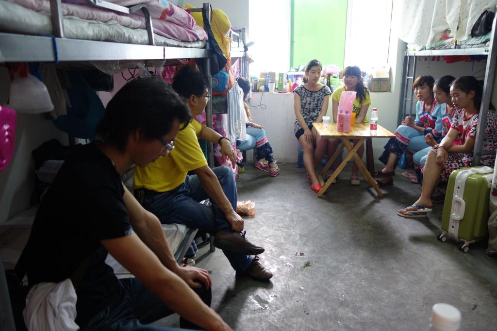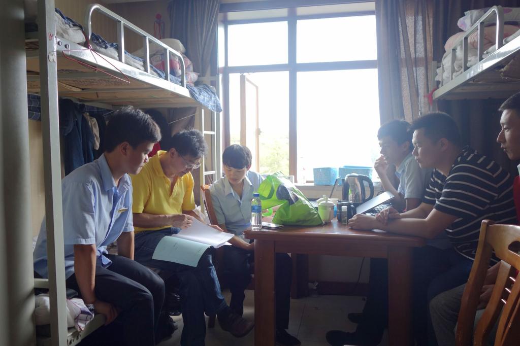 在屯堡酒店实习生寝室与学生座谈