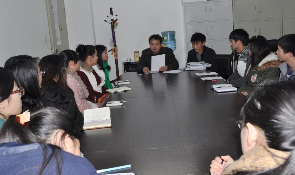 2014年 12月4日晚,我院学生党支部组织了2014年下半年预备党员转正暨发展对象座谈会,旅游学院党总支学生党支部书记潘昌盛老师参加了此次会议并发表讲话。会议由旅游学院党总支学生党支部副书记王维一同志主持