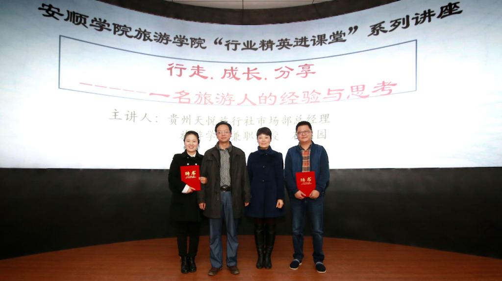 10月13日下午,贵州天悦旅行社市场部总经理石园园应邀在A02教室为我院学生作“行走、成长、分享——一名旅游人的经验与思考”的讲座。我院一百多名师生聆听讲座。