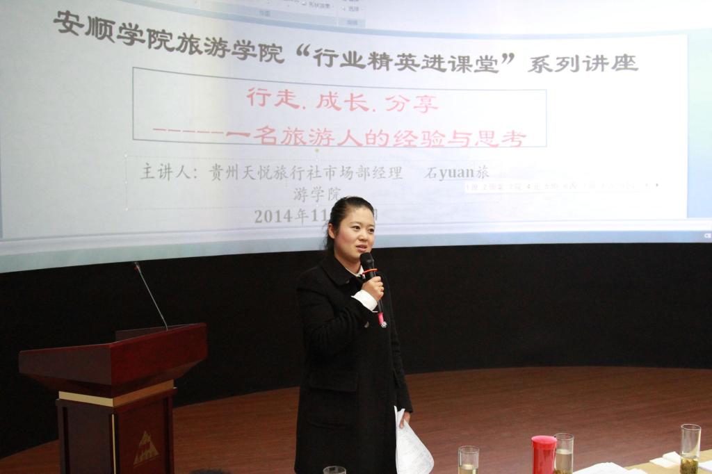贵州天悦旅行社市场部总经理石园园为我院学生作讲座