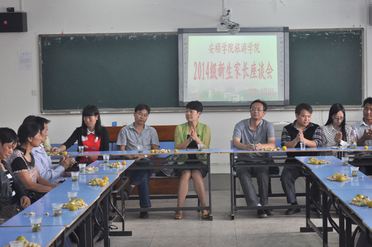 下午2点整,我院主要领导、新生班主任、专职辅导员等人员参加“安顺学院旅游学院2014级新生家长座谈会”,就学生家长普遍关心的就业、安全、职业规划等问题进行了耐心、细致的解答,并就相关问题进行了交流。