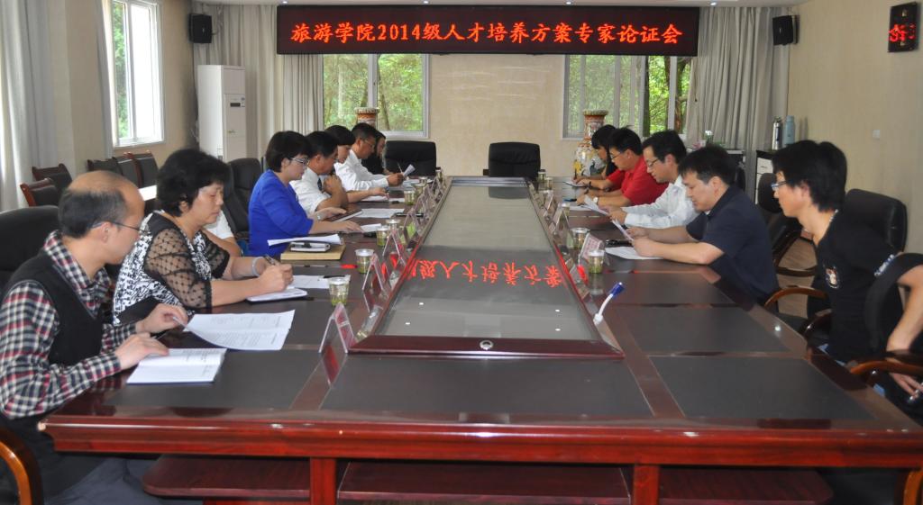 2014年6月5日下午,我院在学校行政楼二楼会议室举行2014级人才培养方案专家论证会。安顺学院副校长王芳恒,安顺市旅游局局长顾新蔚,黄果树旅游集团股份有限公司总经理周云虹、人力资源部主任黄莹,黄果树屯堡酒店公司总经理佘宏、安顺学院教务处处长支敏、安顺学院实验管理中心主任杨筱珊、安顺学院教务处副处长王家顺受邀参与论证,我院领导和部分教师参加了此次论证会。会议由副院长潘昌盛主持。