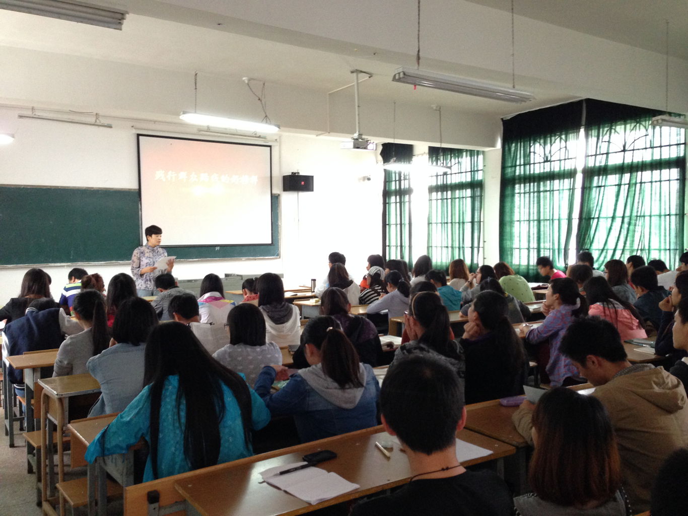 2014年5月26日下午,我院全体教师、机关党总支兰定松老师与学生党员、入党积极分子一同在新教学楼B43教室进行党的群众教育实践活动集中学习——观看《践行群众路线好榜样》纪录片,活动由我院党总支书记胡赤兵主持。胡书记说到,这100部以学习贯彻党的群众路线为主题的先进典型事迹片是开展教育实践活动、学习先进典型和身边榜样的生动教材。本次学习与观看的是其中重要的一部《杨善洲》。“一个共产党员对党的情怀超越了一个父亲对子女的关爱”的杨善洲用默默奉献的实际行动证明了真正的共产党员,他保持了党员干部的先进性,是党的群众路线忠实的践行者的榜样。