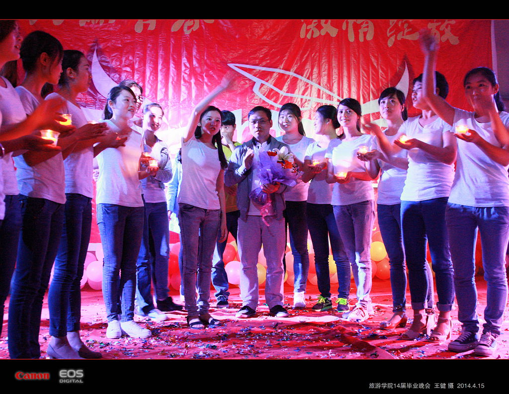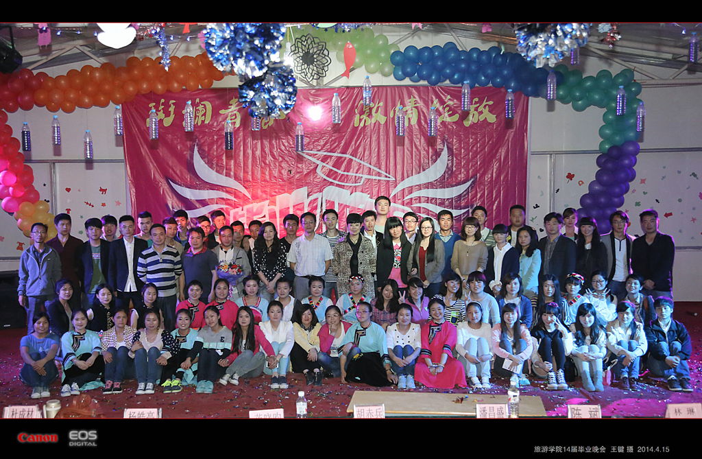 “斑斓青春,激情绽放”,晚会在毕业生与老师合影中落下帷幕。