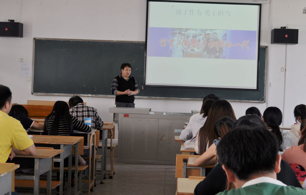 2014年4月14日下午,我院党的群众路线教育实践活动第六次集中学习在新教学楼B43教室进行。我院党总支书记胡赤兵、院长吴羽,全院教师、学生党员、入党积极分子等参加此次集中学习。活动由副院长潘昌盛主持,以学习习近平总书记关于实现中华民族伟大复兴中国梦、全面深化改革等重要讲话精神为主题。