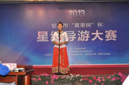 10月15日,2013安顺市“黄果树”杯星级导游大赛在黄果树旅游集团公司五楼报告厅举行。我院2名学生代表参加比赛,49名学生观摩比赛。