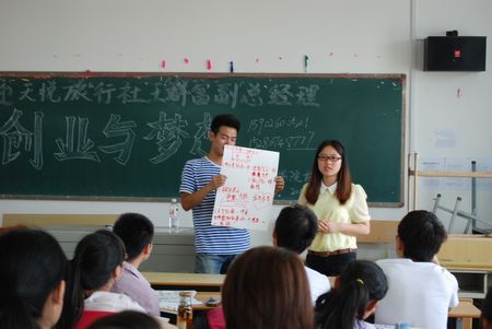 6月17日下午,天悦旅行社副总经理王群富应邀在新教学楼B42教室举办以“创业与梦想”为主题的知识讲座。我系一百余名学生聆听讲座。