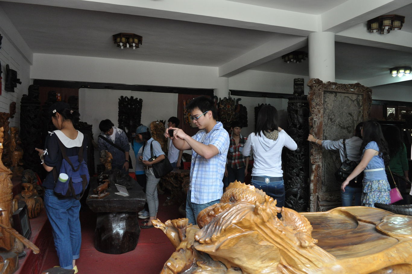 在蜡染馆,蒋晓昀教授及蜡染馆馆主洪福远先生为同学们讲解了蜡染的制作工序,介绍蜡染作品创作的初衷和理念,让学生对蜡染有了更清晰的概念;在文庙管理处吴忠兴先生带领下参观了安顺文庙,同学们领略了文庙的建筑之美,体会到了劳动人民智慧的结晶;在参观商品市场的过程中,同学们对安顺当地的旅游商品开发和销售情况有了更多的了解。
