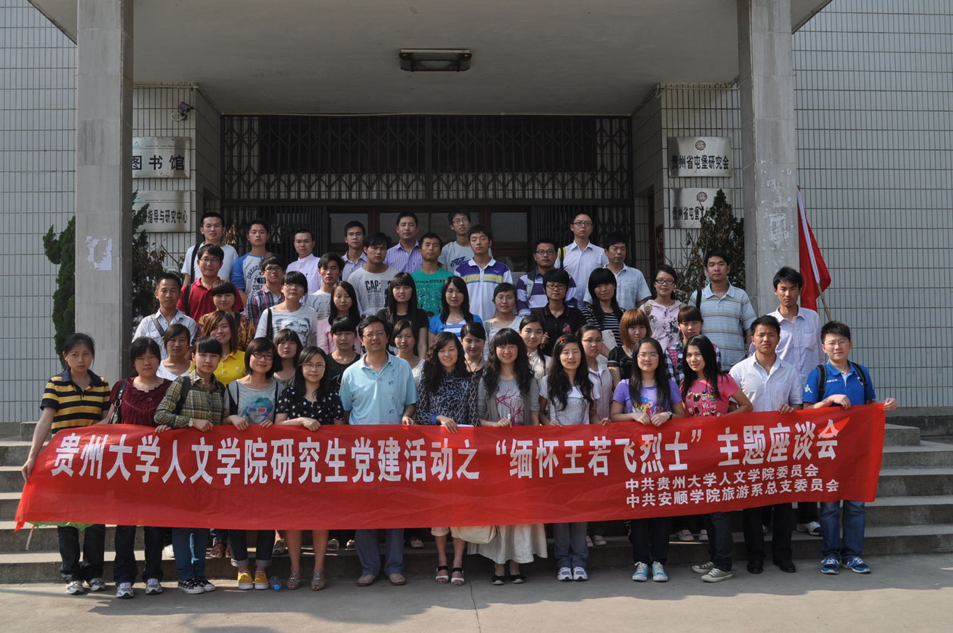 2011年5月27日上午,我系学生党支部接待了来自贵州大学人文学院28位老师和研究生代表。在我系同学的陪同下,来宾参观了王若飞故居、安顺文庙及贵州屯堡文化研究中心,并在我校853教室举行了以“学习革命先烈王若飞精神,促学生党建再提高”的主题座谈会。