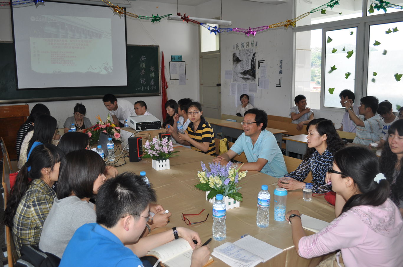 出席座谈会的有贵州大学的28位研究生和老师、我系领导、老师、系团支部书记及我系学生党支部同学。会议上,贵州大学陈老师、我系副主任吴羽教授分别发言。来自贵州大学的研究生代表畅谈了他们对爱国主义的理解和对先烈事迹的感悟。最后从实际生活出发,与我系同学就学习、考研、生活、情感,人生观、哲学道理等问题进行交流。
