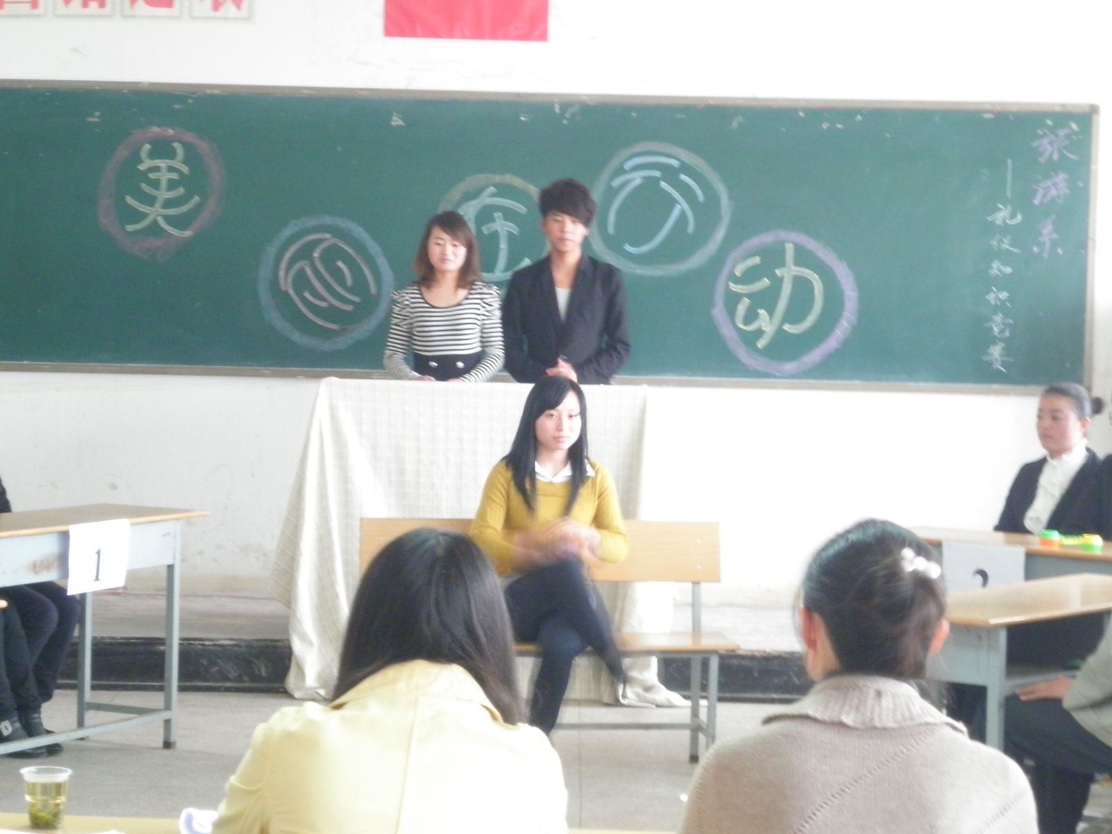 为了进一步弘扬中华文明礼仪,传承和发扬优秀文化传统,并且为了更好的向全院展示我系学生的良好形象和素质,丰富我系学生校园生活,为我系学生提供一个拓展礼仪课堂、展现自我风采、诠释自我激情的闪亮舞台,同时也可以更好的响应安顺学院“校园文化月”活动,我系在2011年4月15日举办了“美丽在行动”大学生礼仪知识竞赛。此次竞赛由旅游系团总支学生会主办,学生会礼宾部牵头组织,活动全程由林琳老师作指导,系主任吴羽、书记蒋晓昀出席了开幕式。