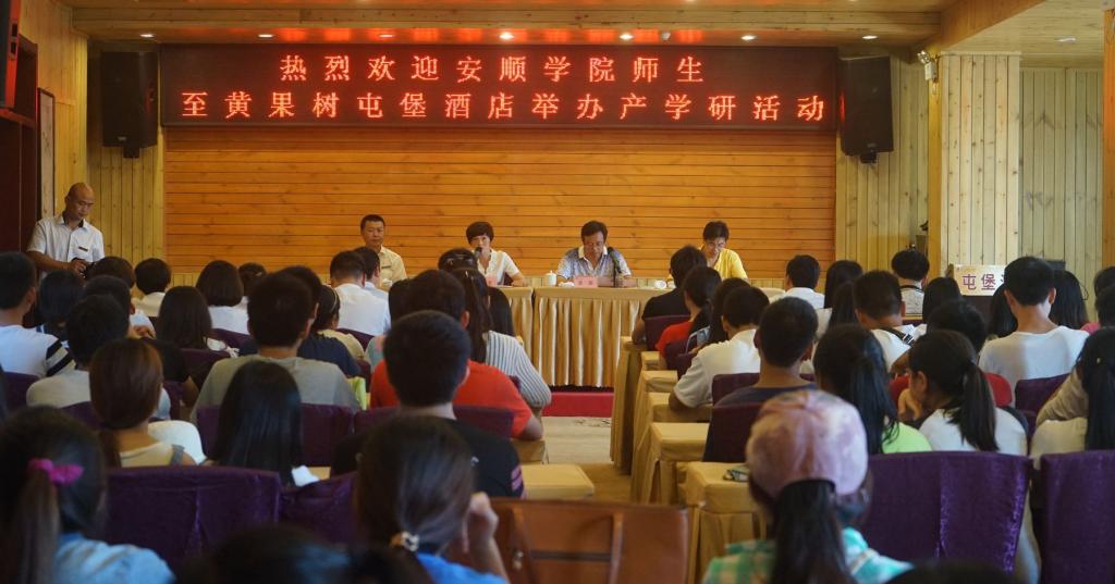 为切实推进“旅游管理专业产学研合作教育”项目的建设工作,结合我院“旅游管理专业综合改革试点”、专业课程实践教学的工作安排,我院2013级旅游管理本科班63名学生到黄果树屯堡酒店开展为期12天的见习活动。