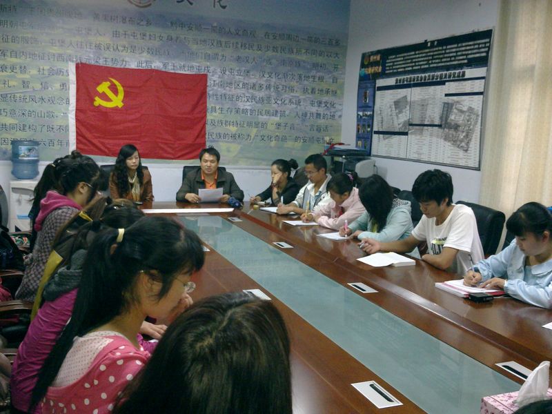 我系学生党支部全体学生党员于2011年10月13日在屯堡研究中心办公室集体学习了胡锦涛同志在纪念辛亥革命100周年大会上的讲话,会议由我系党总支副书记蒋晓昀老师主持。