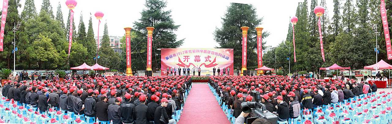 2012年9月26日,以“坚持科学发展弘扬爱国精神,服务安顺经济”为主题的“2012年安顺社会科学普及月活动开幕式”在安顺市金钟广场隆重举行。我校安顺学院作为主办方之一,派出了近200人的师生代表团,其中我系2010级旅游管理本科班作为学校代表之一参加了开幕式。