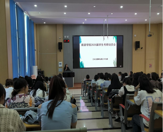 为发扬“咬定青山不放松”的优秀品质,鼓励学生坚持考研目标不动摇,不气馁,不放弃,提高我院整体考研率。2024年9月27日下午14:00—16:00,旅游学院在顺理楼阶梯教室128隆重举办了2021级考研动员大会。旅游学院党委书记彭瑛、专职副书记杜成材、副院长韦明顶及辅导员杨卓君与班主任代表夏长杙参加了动员大会。