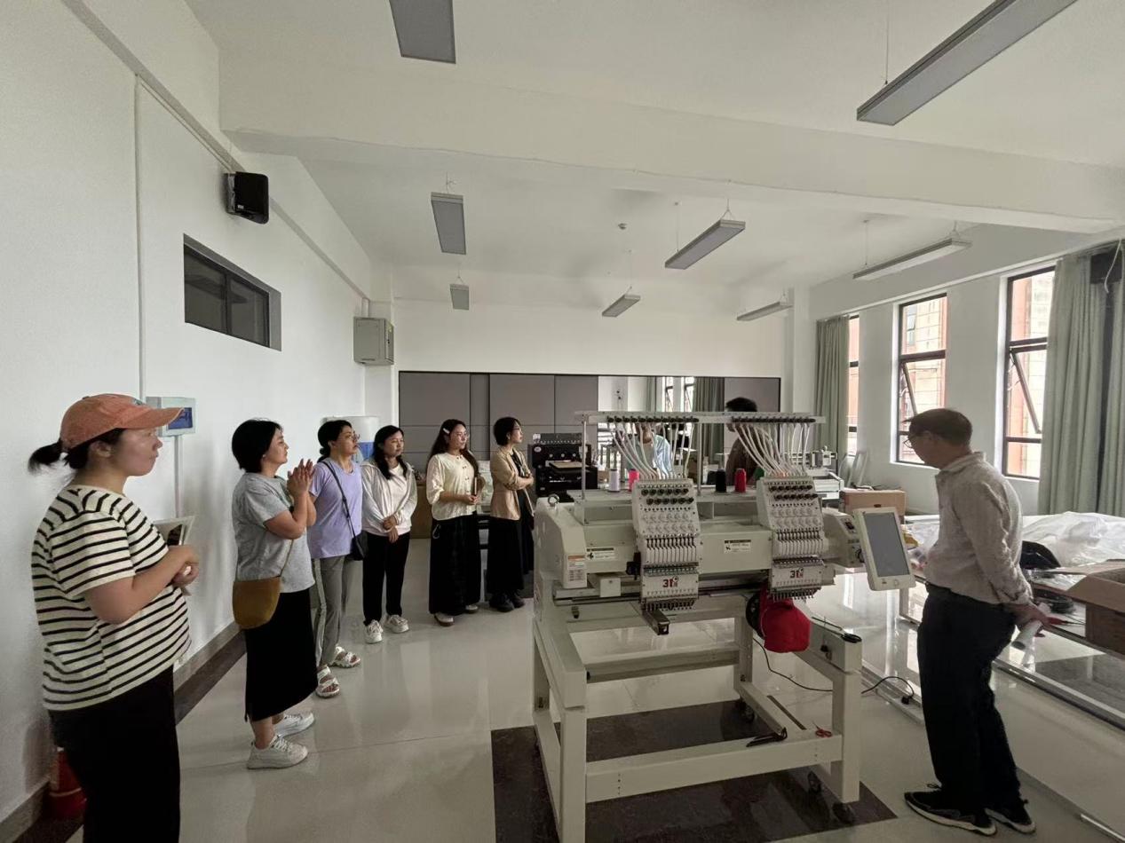 工程师为参训教师讲解刺绣机使用要领
