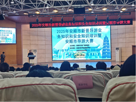近日,安顺市导游大赛决赛在安顺学院学术报告厅圆满收官。此次大赛由安顺市文体广电旅游局主办,安顺学院旅游学院协办,旨在提升学生专业素养,挖掘优秀文旅人才,助力贵州文旅事业发展。旅游学院全体领导、教师及百余名学生到场观赛。