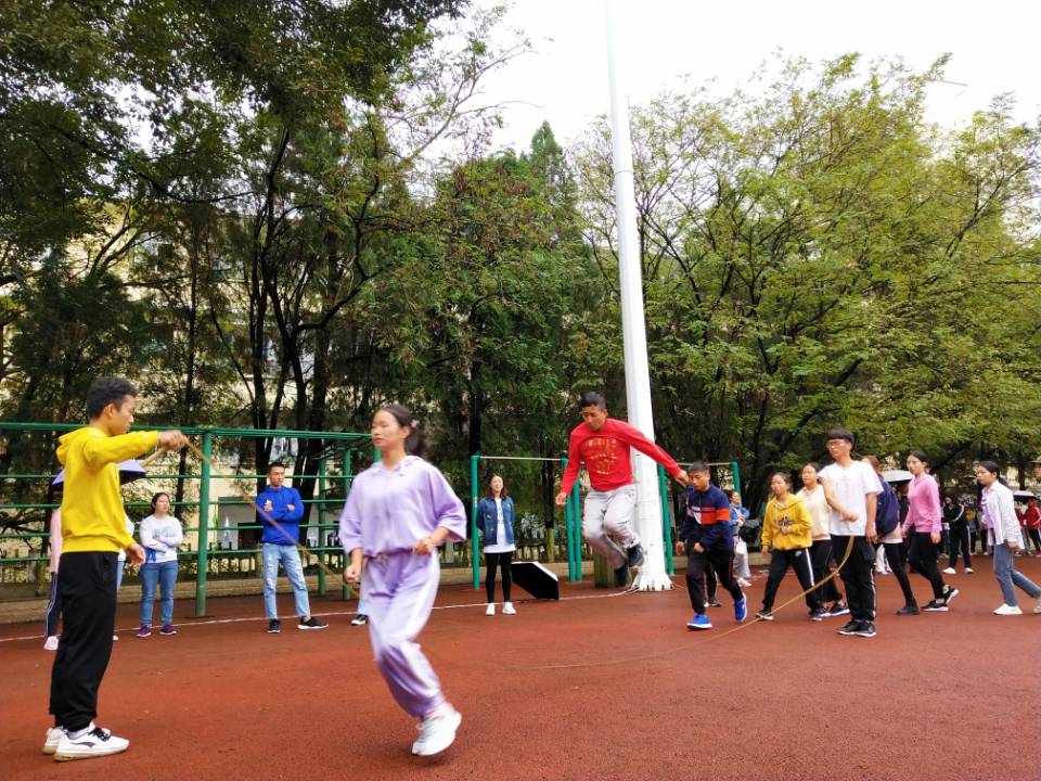 为了更好的丰富同学们的课余生活,加强各学院同学之间的交流,提高学生身体素质。2019年10月11日,我院参与了学校组织的大型跳绳比赛活动,中午12点整比赛在足球场正式拉开帷幕。本次比赛,主要分为单人比赛和团体比赛两部分。