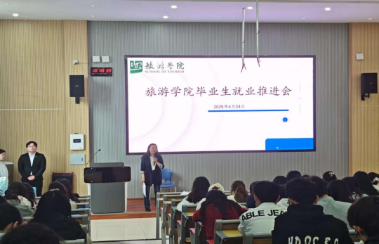 在毕业生论文答辩前夕,旅游学院于4月24日上午在顺理楼128阶梯教室召开2025届毕业生就业工作推进会,全面部署和推进毕业生就业工作。学院领导、毕业班班主任、辅导员及全体2025届毕业生参加。